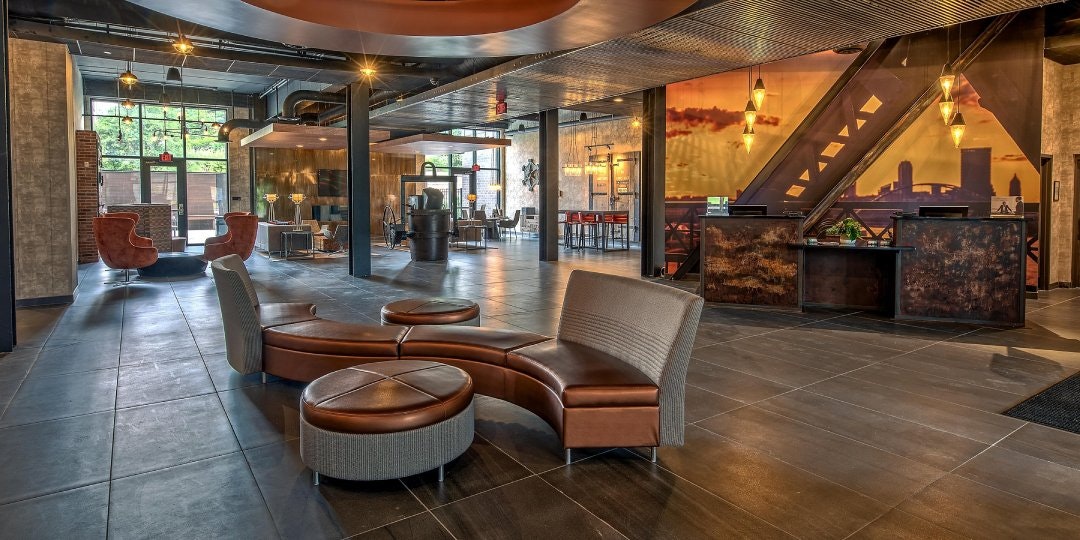 Built on the site of the former J&L Steel Mill, The Hotel Indigo Pittsburgh University-Oakland is nestled in between Southside and Oakland. This vibrant boutique hotel gives nod to its steel mill past and its high tech existence today. Each of our spacious rooms features plush bedding, spa-inspired showers, ergonomically designed desk chairs, free Wi-Fi, and views of the Monongahela River. Our restaurant and lounge, Eliza, takes its name from the Eliza Furnace that once existed at the J& L Steel Mill. Additionally, our Rooftop Terrace provides spectacular river views and the Hot Metal Bridge, which carried 180 tons of steel per hour over the Monongahela River during WWII. Our beautiful lobby or adjacent patio is an ideal space for a reception and our ballroom, featuring floor to ceiling windows, is perfect for meetings and social events. Whatever your needs, our sales and event staff can meet them!