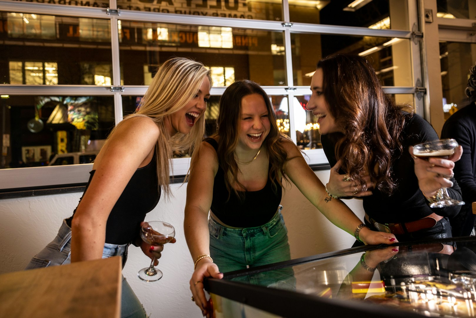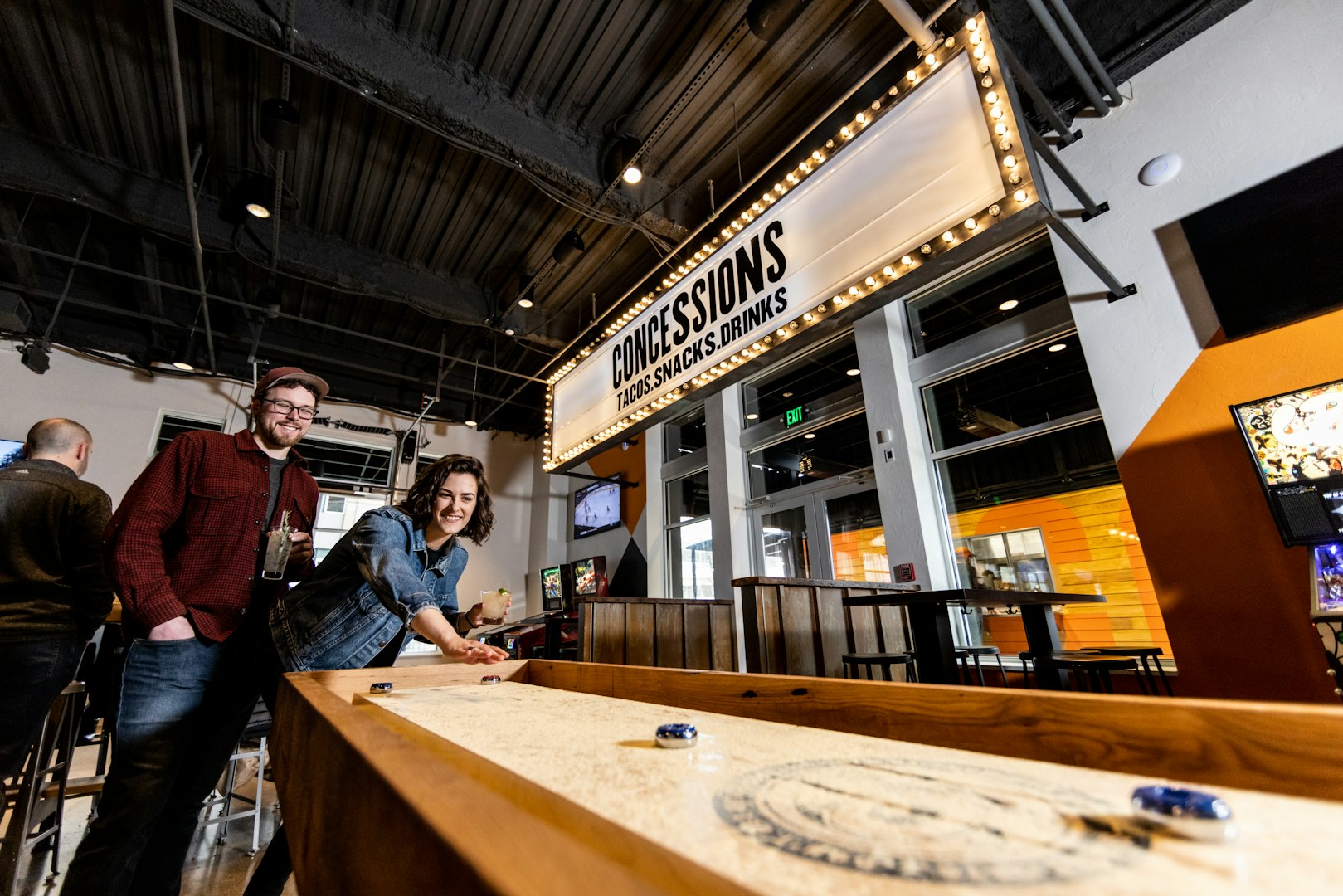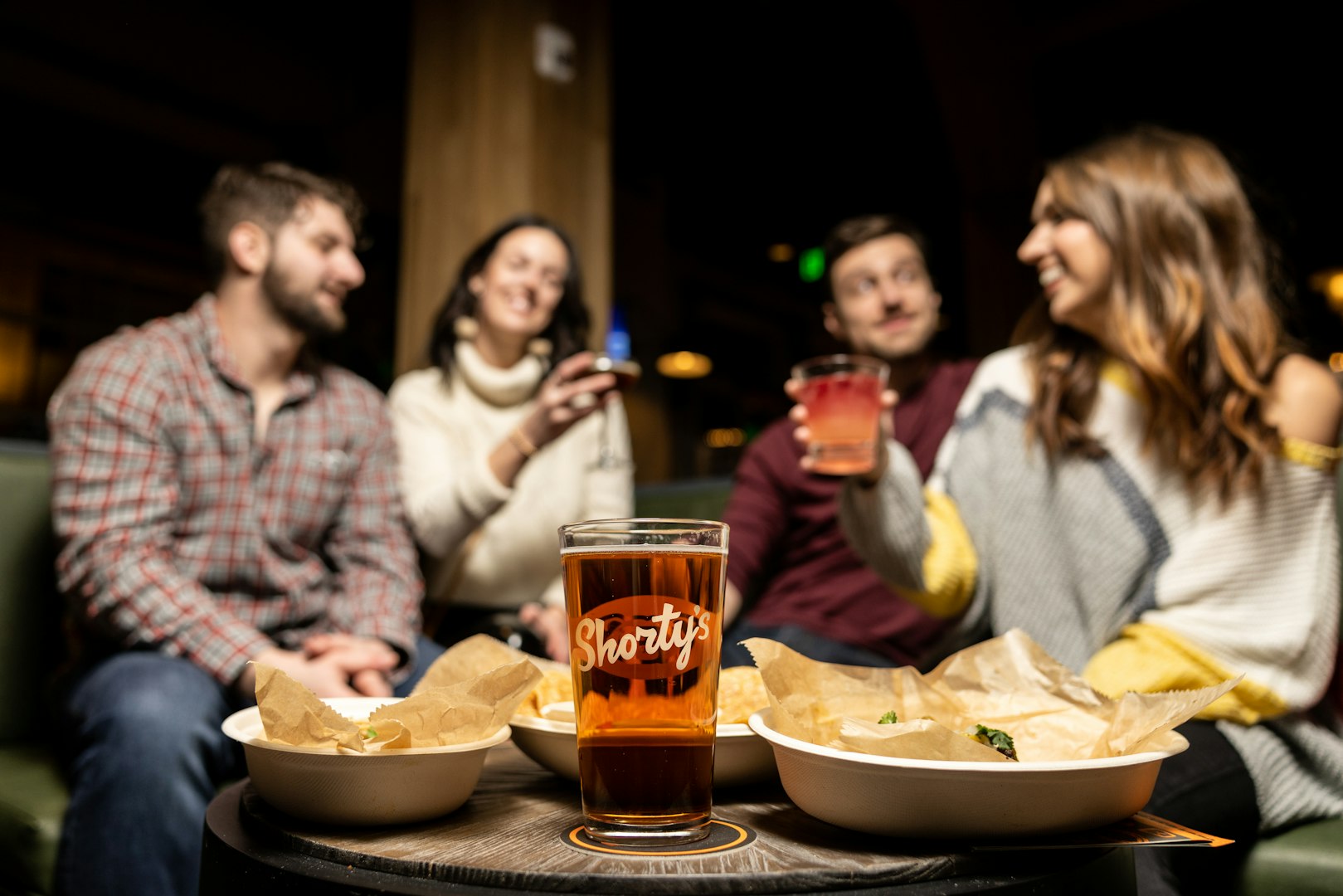 At Shorty's Pins x Pints retro games, like duckpin bowling, shuffleboard, bocce, foosball & pinball, are mixed with more modern elements, like a vintage style but ‘social ready’ photo booth & a digital train station split-flap sign reimagined to keep you posted on a busy schedule of “arriving & departing” beer selections + house made craft-draft cocktails. Out back, a small (but very mighty!) shipping container taco stand turns out scrumptious sharable Mexican street treats like, Al Pastor, Smoked Beef Barbacoa & Cola Carnitas Tacos. Outside, camp-style fire pits are the perfect place to relax, cozy up & take in the beautiful view of Pittsburgh's skyline with friends - both old & new. Come roll with Shorty.