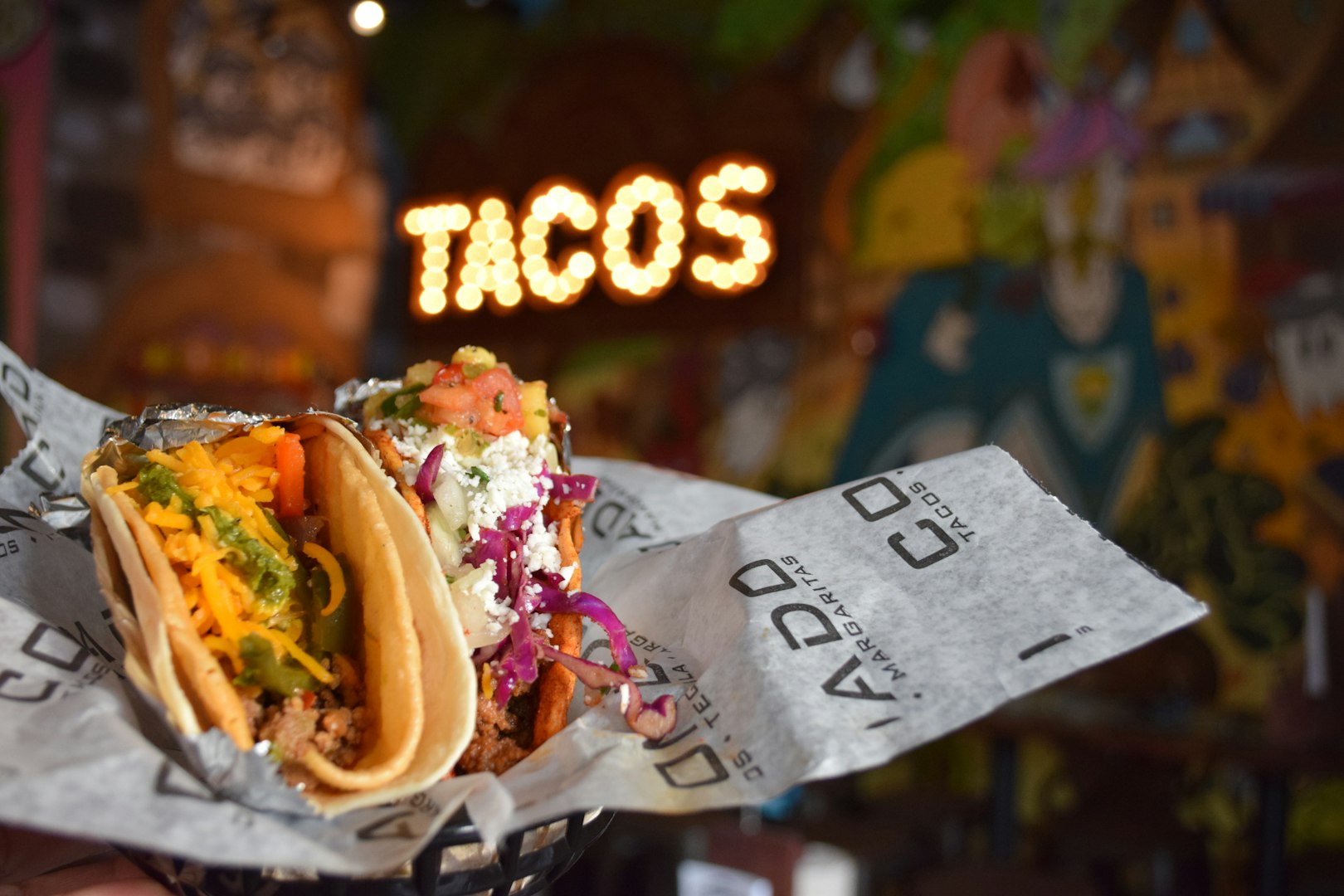 Build your own tacos featuring double decker shells and fresh ingredients made daily. Choices ranging from the toppings all the way down to the shell. Served with your favorite margarita!