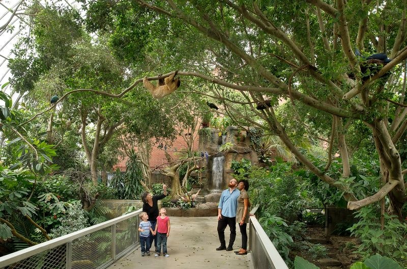 The nation's bird zoo is home to more than 500 birds and other animals from around the world, many of them threatened or endangered in the wild. Large walk-through habitats allow for close interactions between visitors and birds. Visitors can watch flamingos frolic, witness penguins waddle and swim, and "hang out" with a sloth.
